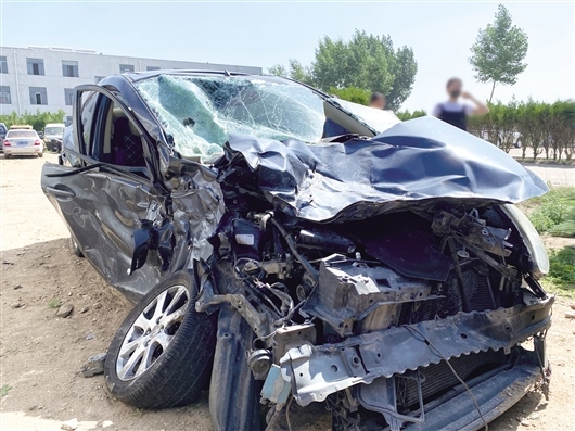 小轎車被撞得面目全非