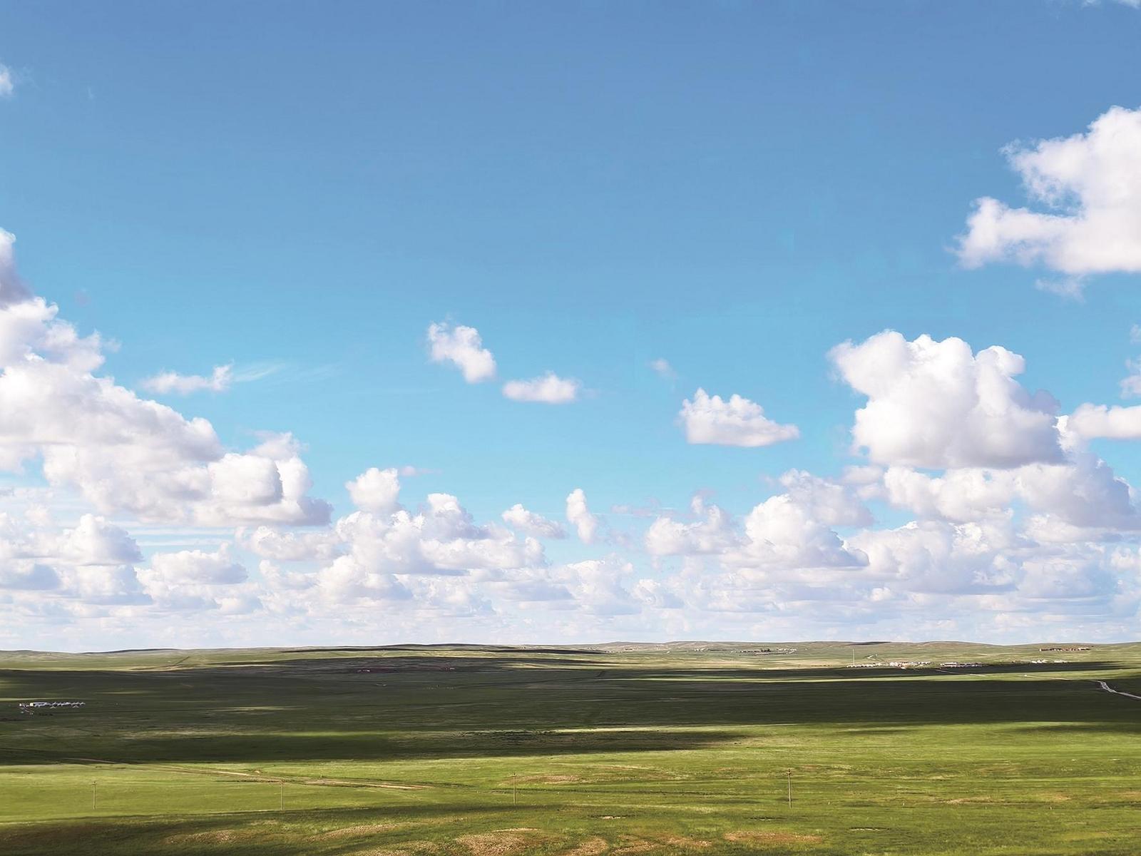 藍天、白云、大草原。