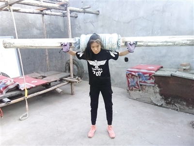 用工地上撿來的木頭樁和繩子制作的簡(jiǎn)易牽引機(jī),加了墊子的木凳做跳躍訓(xùn)練,用木頭和海綿做的啞鈴……走進(jìn)呼和浩特市土默特左旗察素齊鎮(zhèn)鄭國(guó)花的家里,由父親耗時(shí)半個(gè)月打造的簡(jiǎn)易健身房就是鄭國(guó)花每天訓(xùn)練體能的地方。鄭國(guó)花在土默特左旗第一中學(xué)高一就讀,每天凌晨4點(diǎn)多,父女二人就準(zhǔn)時(shí)出現(xiàn)在察素齊鎮(zhèn)街頭的柏油路和體育場(chǎng)里。從小學(xué)六年級(jí)到高一,訓(xùn)練從不懈怠,一堅(jiān)持就是5年?!捌鋵?shí)最初讓孩子練習(xí)中長(zhǎng)跑,主要是為了鍛煉孩子的身體。女兒4個(gè)月大的時(shí)候,她媽媽就離開了,我一直又當(dāng)?shù)之?dāng)媽把她拉扯大,但這娃娃身體一直不好,不怎么吃飯,身體十分瘦弱,直到上小學(xué)六年級(jí)的時(shí)候,連一碗飯都吃不進(jìn)去。我一看再這么下去身體指定是要垮掉的,就想著讓她練習(xí)跑步,能多吃點(diǎn)飯。因?yàn)槲沂擒娙顺錾?,以前也是運(yùn)動(dòng)員,和女兒商量后,她也同意了,我們就開始跑步。第一個(gè)月,她還追不上我,但飯量確實(shí)見長(zhǎng),到了第二個(gè)月,我就追不上她了,我開始騎著自行車陪她跑,再后來自行車追不上了,我就騎了一輛三輪車,三輪車也不行了,干脆買了一輛摩托車,這么多年從沒間斷過。”7月19日,鄭龍?jiān)诮邮苡浾卟稍L時(shí)表示,對(duì)于女兒,她最大的希望是女兒健健康康的,以后能進(jìn)入北京體育大學(xué),將來能進(jìn)入國(guó)家隊(duì),為國(guó)爭(zhēng)光。