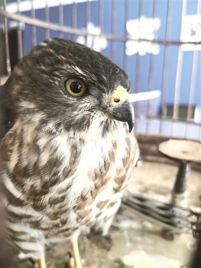 8月19日早上,民警于將雀鷹送往大青山野生動(dòng)物救護(hù)中心,中心工作人員將對(duì)其進(jìn)行觀察和喂養(yǎng),待其體能恢復(fù)后放歸自然。 (記者 郝儒冰)攝影/賈德京