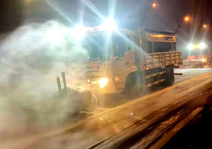 北疆新聞網(wǎng)、北疆新聞客戶端消息(記者 劉嬙)12月5日晚,內(nèi)蒙古自治區(qū)首府呼和浩特出現(xiàn)降雪天氣。為防止道路積雪結(jié)冰,保障廣大市民和車輛出行安全,呼和浩特市和各區(qū)兩級環(huán)衛(wèi)部門以雪為令,聞雪而動,按照清雪工作預(yù)案,分工明確,責任到人,機械和人工清雪緊密配合,第一時間在市區(qū)道路實施機械及人工清雪作業(yè),全面清理道路積雪結(jié)冰,確保高標準、高質(zhì)量、高效率地完成清雪任務(wù)。