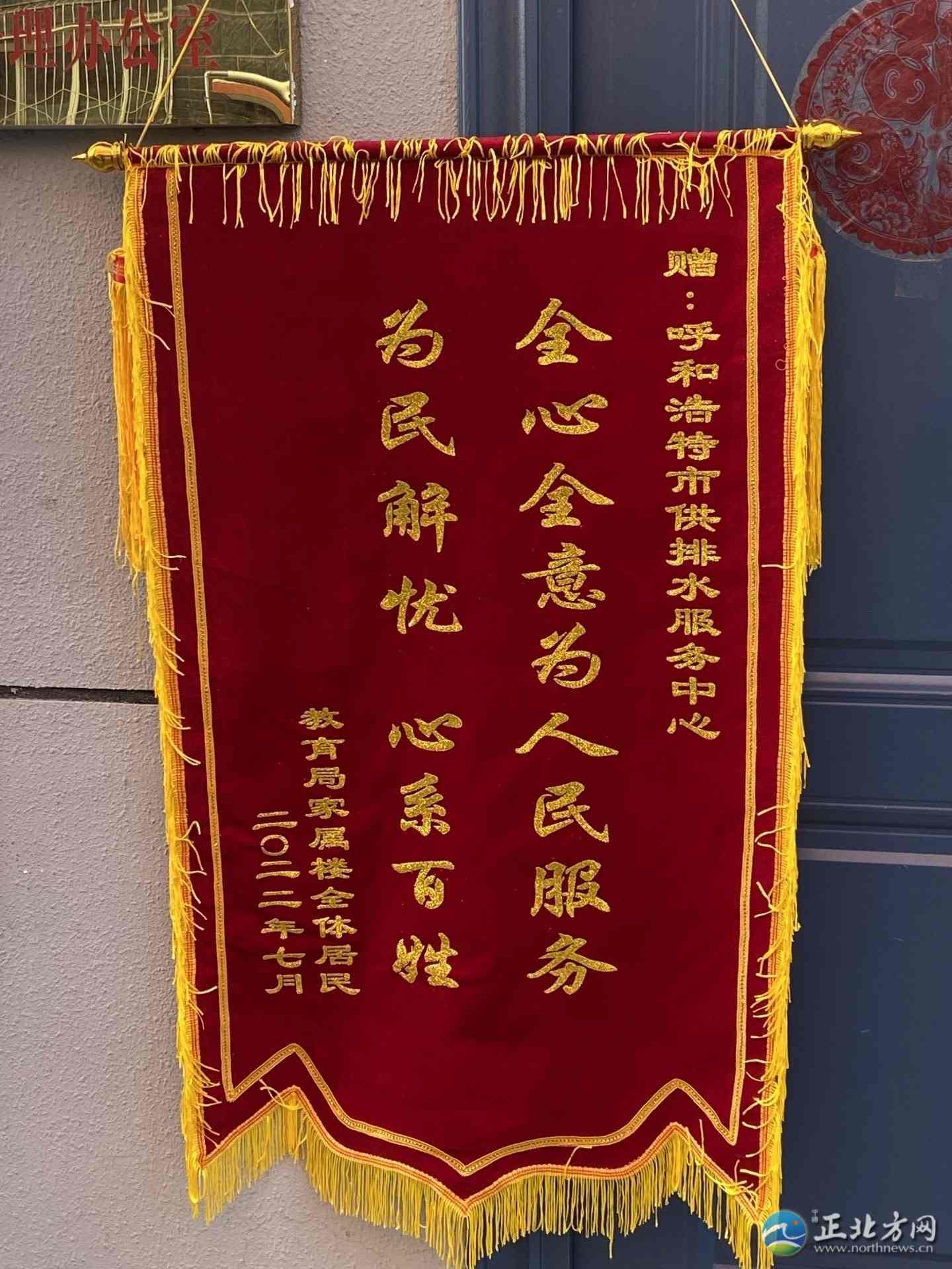 隨后,記者又來到新城區(qū)教育局宿舍樓,該小區(qū)已經(jīng)改造完畢,居民們已經(jīng)能正常用水了。為了表示感謝,小區(qū)全體居民特地制作了一面錦旗,派居民代表送到呼和浩特市供排水服務(wù)中心。
