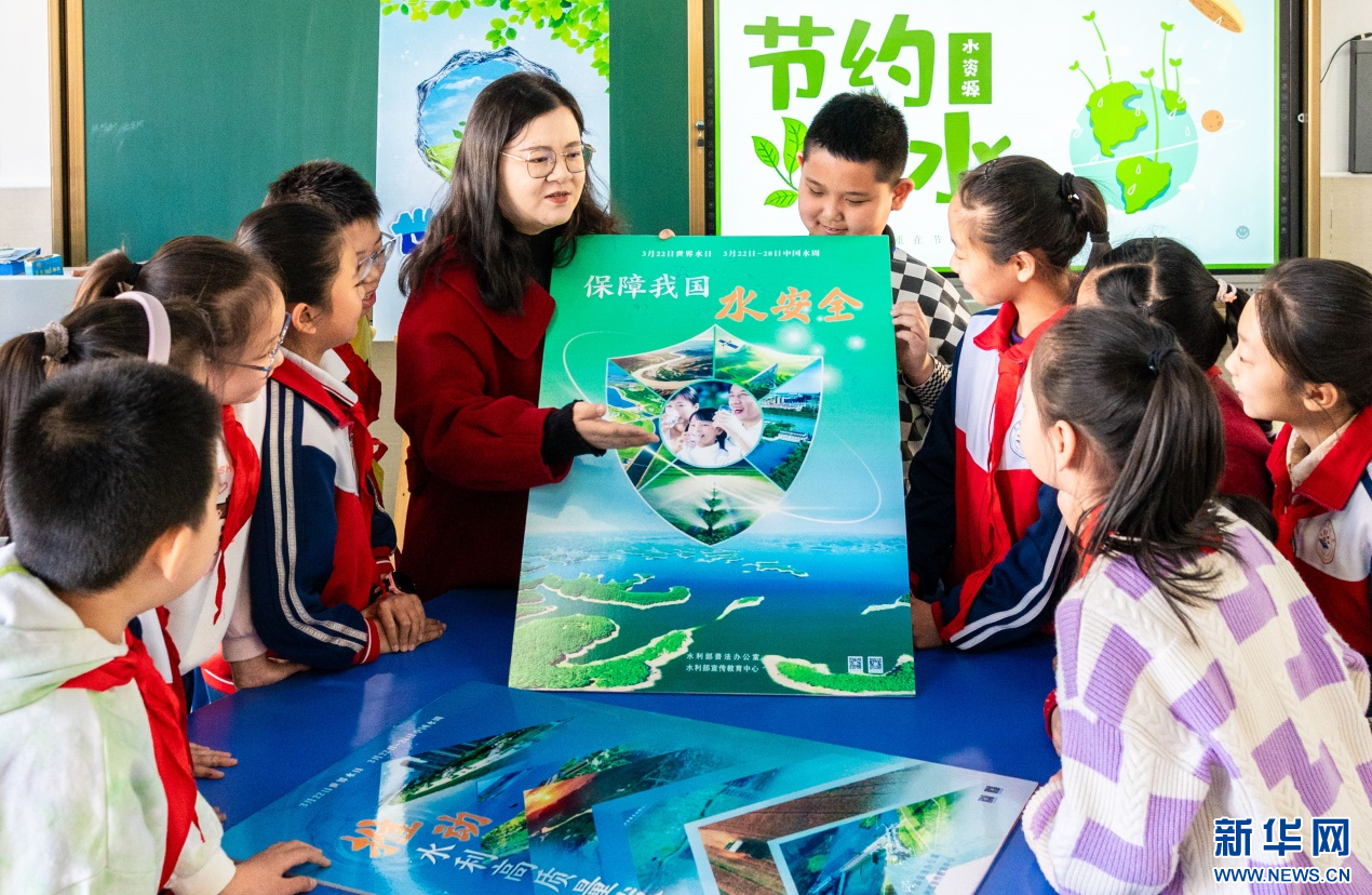 ??3月20日,呼和浩特市玉泉區(qū)石東路小學(xué)老師向?qū)W生們講解“保障我國水安全”等知識(shí)。新華網(wǎng)發(fā)(丁根厚 攝)
