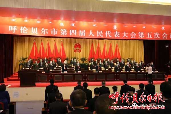 2月23日9時,在雄壯的國歌聲中,呼倫貝爾市第四屆人民代表大會第五次會議在呼倫貝爾市政務(wù)綜合樓報告廳開幕。