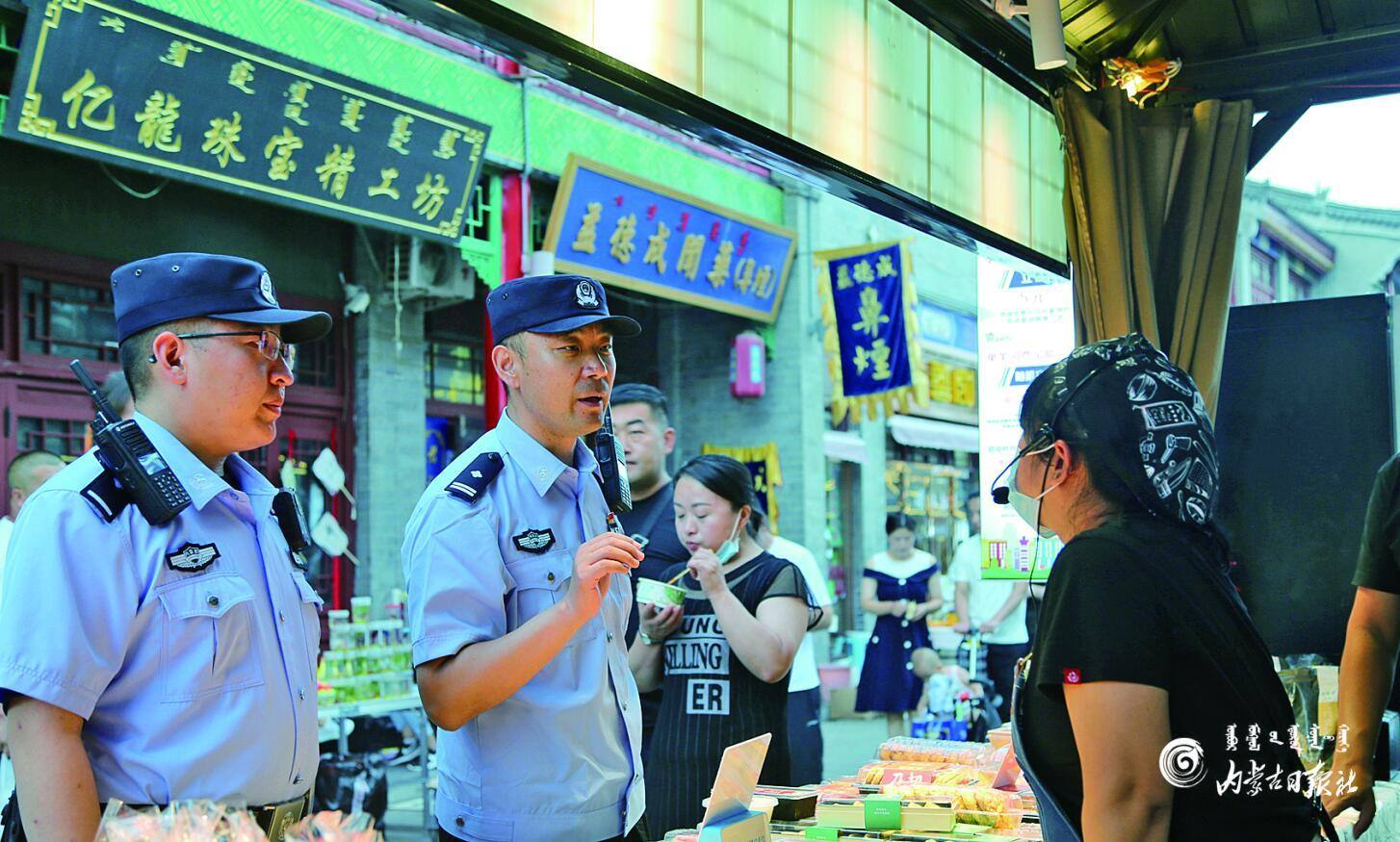 呼和浩特市玉泉區(qū)公安分局景區(qū)治安派出所民警立足大召寺AAAA 級景區(qū)及周邊治安管控和服務(wù)管理實際,加強日常巡邏,積極服務(wù)群眾、化解矛盾。李文彬 攝