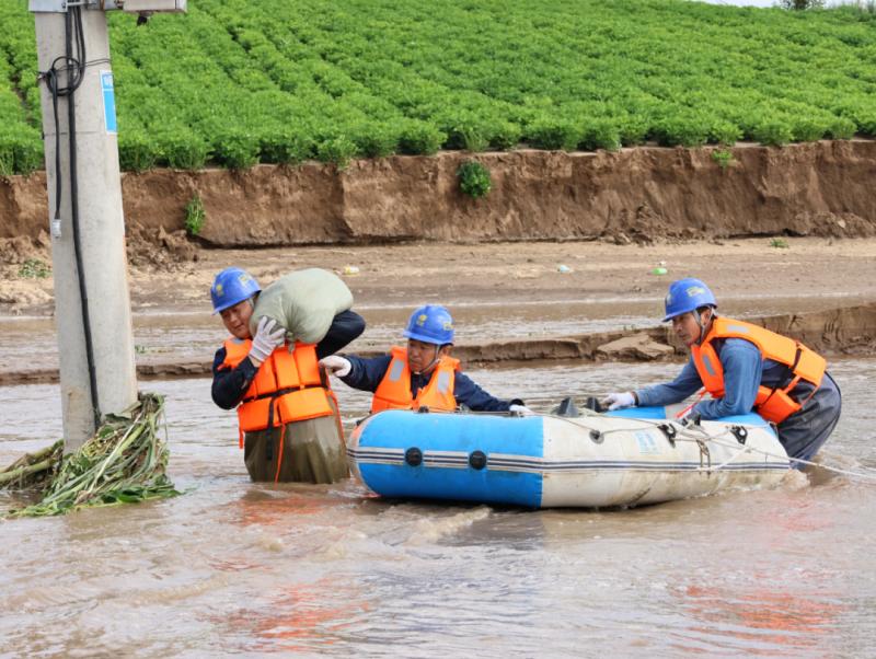 針對強降水預(yù)警,配電專業(yè)迅速響應(yīng)、提前部署,出動123支搶修隊伍、745名人員、130輛車輛,重點針對蓄滯洪區(qū)10條線路、水泡桿區(qū)段21條線路及防汛薄弱點開展專項巡視,提前調(diào)配應(yīng)急搶修力量與物資,做好應(yīng)急準備。組織對電纜通道、環(huán)網(wǎng)柜、箱變等關(guān)鍵設(shè)備開展全覆蓋特巡,著重進行防潮防滲檢查與絕緣性能檢測,及時清除樹障、積水等隱患,從源頭防范設(shè)備故障。屬地汛情較為嚴重的后旗公司,對河道、水渠旁的桿塔利用水泥地毯進行泥沙固化,防止桿塔根部埋土沖刷,低洼區(qū)域采用皮劃艇運送沙袋方法進行加固。