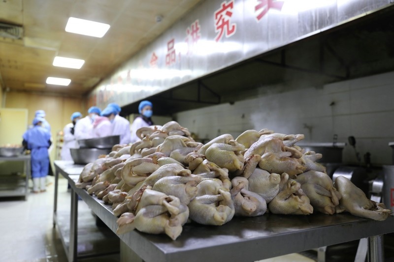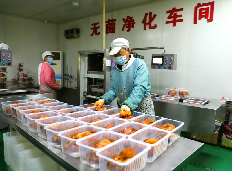 當(dāng)日上午,媒體團(tuán)成員進(jìn)入加工車間實(shí)地了解熏雞、熏蛋、熏肉等特色產(chǎn)品生產(chǎn)加工過程。據(jù)了解,卓資縣的熏雞每年銷量約為400萬只,產(chǎn)值2個(gè)億,帶動(dòng)了當(dāng)?shù)厝罕娒撠氈赂?,是真正的富民?qiáng)縣產(chǎn)業(yè)。目前,卓資熏雞在繼承傳統(tǒng)工藝的基礎(chǔ)上,引進(jìn)鎖鮮包裝,使熏雞保鮮期由原來的7天增加到15天,并進(jìn)入電商平臺(tái)面向全國銷售。