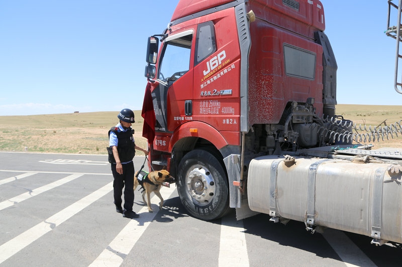 四子王邊境管理大隊(duì)警犬技術(shù)團(tuán)隊(duì)積極開(kāi)展邊境檢查工作