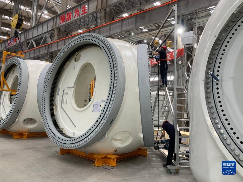 “公司2020年12月在烏蘭察布市注冊成立,今年5月中旬建成投產(chǎn),如今已具備每天生產(chǎn)2臺套風(fēng)機的生產(chǎn)能力?!痹跒跆m察布運達風(fēng)電有限公司的生產(chǎn)車間里,公司副總經(jīng)理常偉指著一臺正在組裝的風(fēng)機說,“我國風(fēng)機研發(fā)能力及技術(shù)水平正逐年向國際水平靠攏,曾經(jīng)風(fēng)機的單機容量只有750千瓦,目前我們車間里生產(chǎn)的風(fēng)機單機容量已超過6000千瓦?!?/p>
