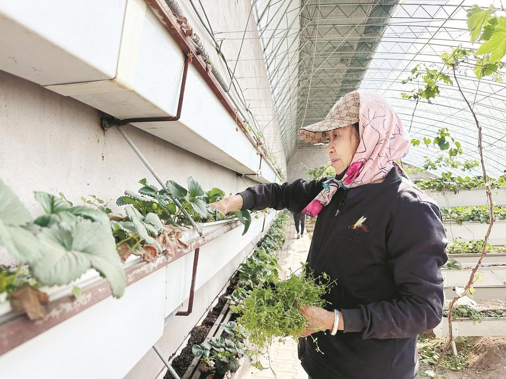 走進(jìn)草莓大棚內(nèi),濃濃的暖意撲面而來。抬眼望去,離地一米多的種植架上種滿了生機(jī)勃勃、長(zhǎng)勢(shì)喜人的草莓;穿梭在種植架間,一顆顆鮮紅欲滴、圓潤(rùn)飽滿的草莓宛如璀璨的紅寶石,從綠葉間“探出頭”來,高高地懸掛在空中,散發(fā)著誘人的清香。種植戶牛尚海正在察看采用立體栽培技術(shù)的草莓長(zhǎng)勢(shì)情況?!斑@是一種三維立體種植方式,能夠充分利用空間和光照,大幅度提高生產(chǎn)效率。以前一畝地最多種8000株,現(xiàn)在能種2.4萬株,產(chǎn)量提高了3倍,而且草莓個(gè)頭更均勻,賣相更好。”牛尚海告訴記者,這種種植方式不僅省工、省力,還降低了勞動(dòng)強(qiáng)度,摘草莓也不用彎腰了。此外,這種種植模式比傳統(tǒng)種植模式每畝節(jié)水50%。