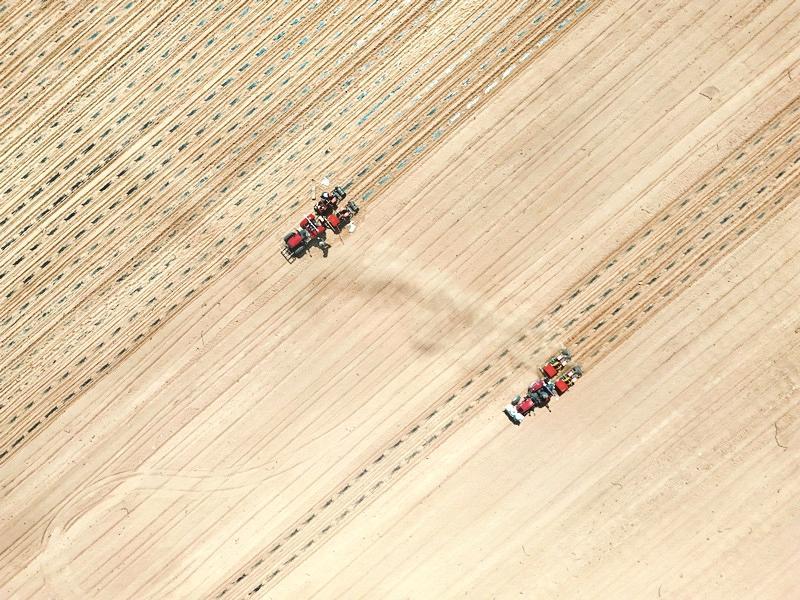 截至目前,海南區(qū)巴音陶亥鎮(zhèn)2.82萬(wàn)畝農(nóng)田已經(jīng)種植完成95%以上,第一次澆水基本完成。(魯吟 攝)