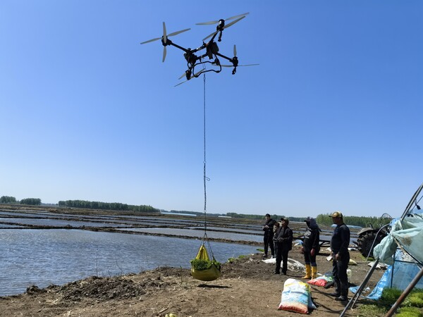 好力保鎮(zhèn)是興安盟大米的核心產區(qū),今年水稻種植面積達12.7萬畝,插秧任務重。為提高春耕效率、降低勞動強度,當?shù)卣e極引導農戶引入無人機運苗技術。這些經過專門改裝的無人機,配備了先進的定位系統(tǒng)和載重設備,一次能吊運10至12盤秧苗,每天可完成近100畝地的插秧運苗任務。而且,它們能夠突破田埂、溝渠的限制,在復雜地形的稻田里自由作業(yè)?!?/p>