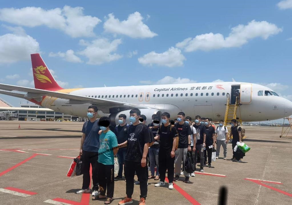 這是辦案民警將部分犯罪嫌疑人押解回通遼市的場(chǎng)景。(受訪單位供圖)