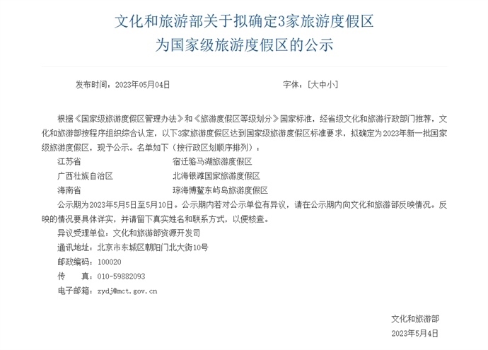 ·文旅部公示2023年新一批國家級旅游度假區(qū)名單。