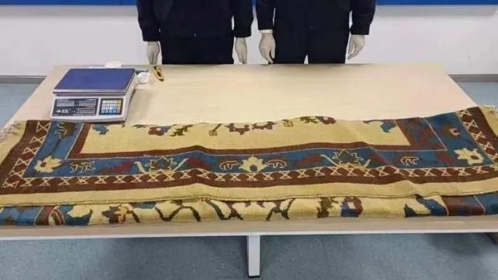 重達(dá)23斤多!深圳郵局海關(guān)查獲編在地毯里的冰毒