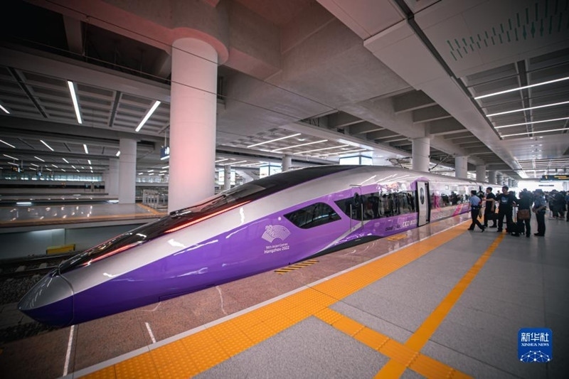 復(fù)興號亞運智能動車組開啟首次試乘。