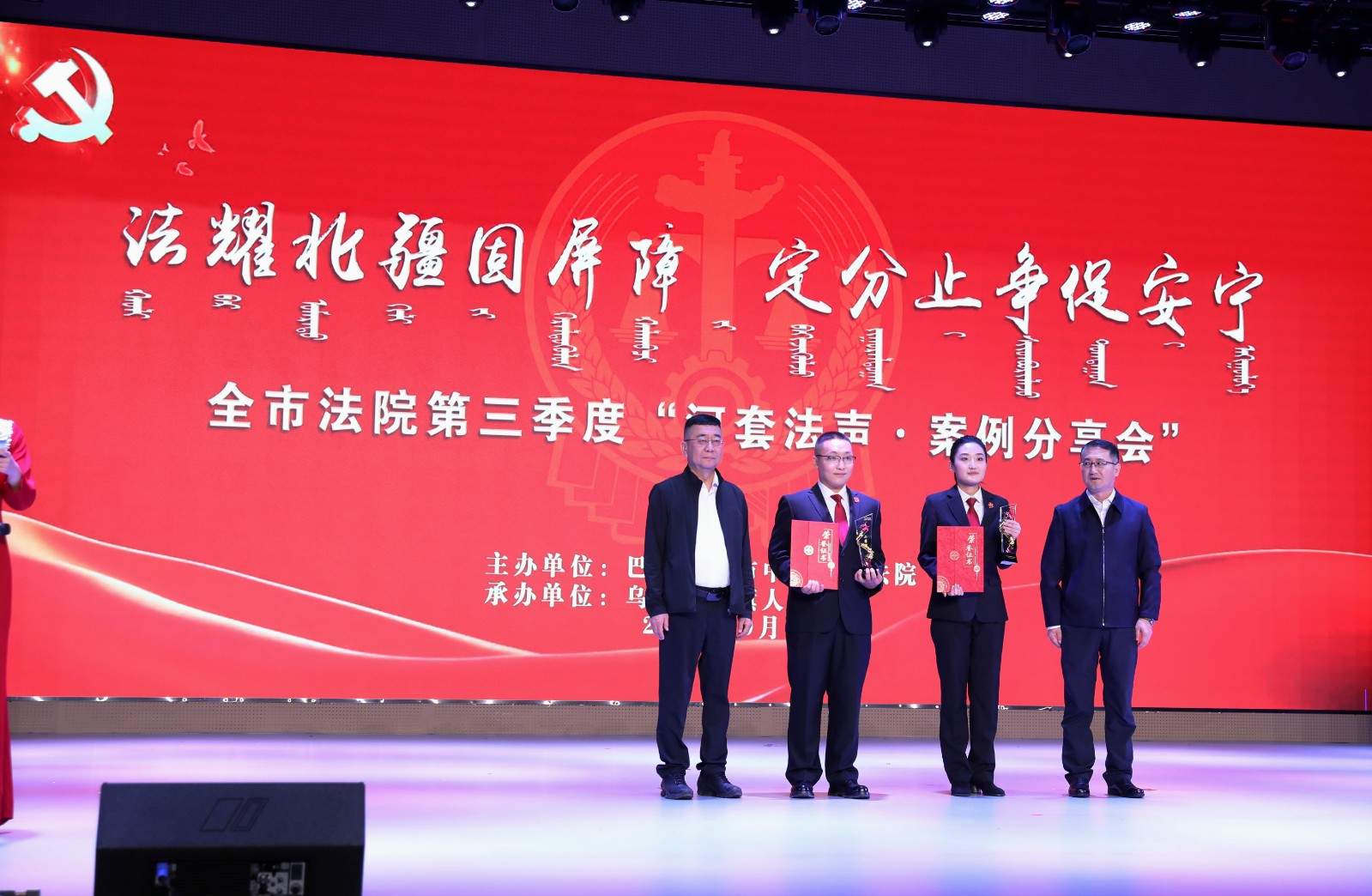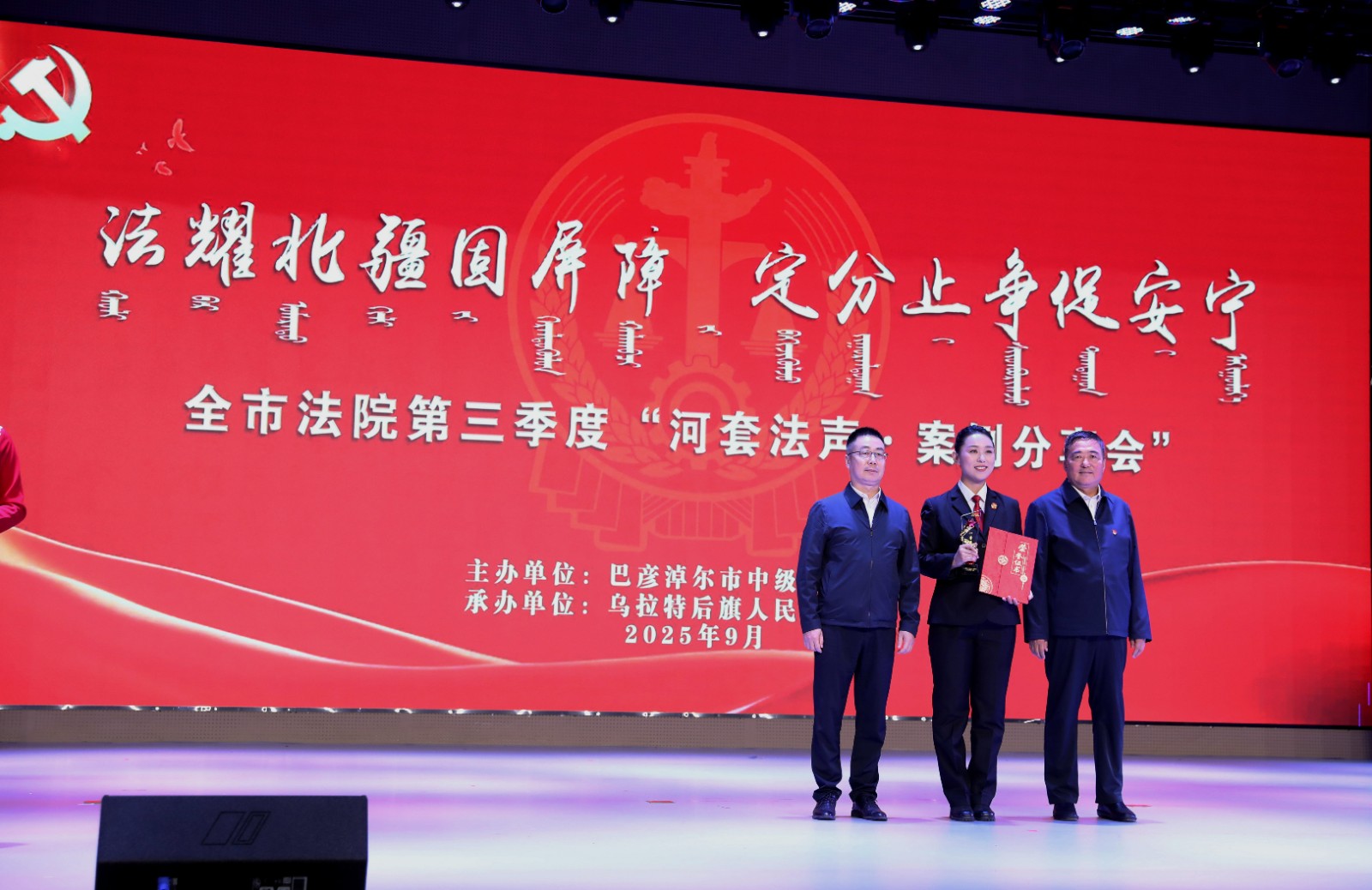 北疆新聞巴彥淖爾9月19日消息 9月19日,由巴彥淖爾市中級人民法院主辦、烏拉特后旗人民法院承辦的“法耀北疆固屏障,定分止?fàn)幋侔矊帯卑蛷┠谞柺蟹ㄔ旱谌径取昂犹追暋ぐ咐窒頃背晒εe辦。來自全市法院系統(tǒng)和部分巴彥淖爾市、烏拉特后旗兩級人大代表、政協(xié)委員及各界群眾等共計280余人參加了此次分享會。