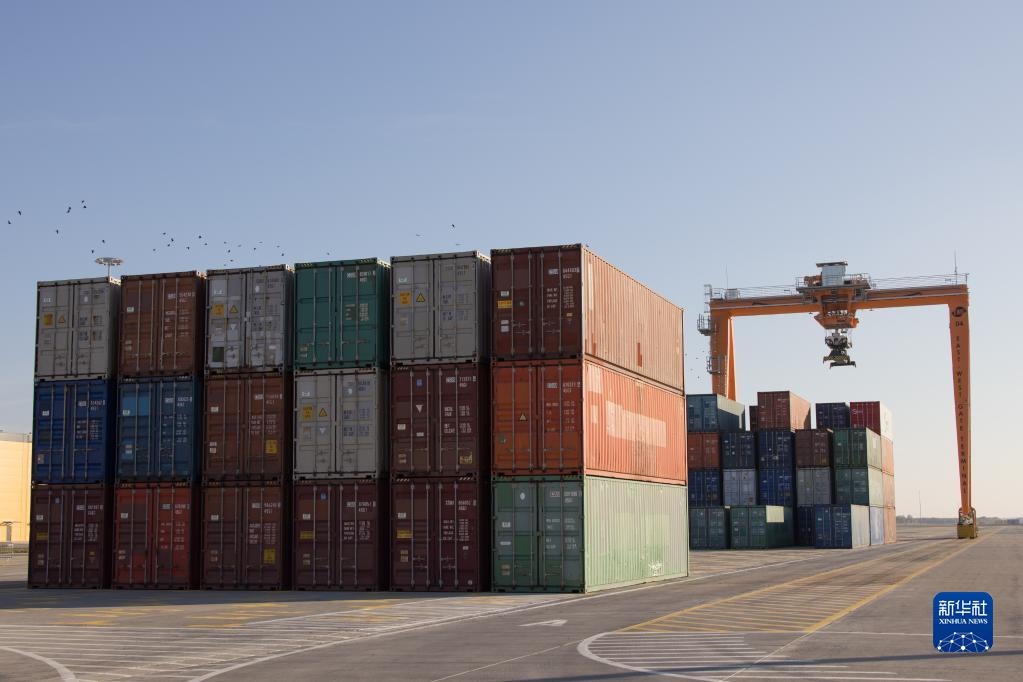 這是10月18日在匈牙利費涅什利特凱的東西門場站拍攝的集裝箱和由5G技術遠程控制的龍門起重機。新華社發(fā)(弗爾季·奧蒂洛攝)