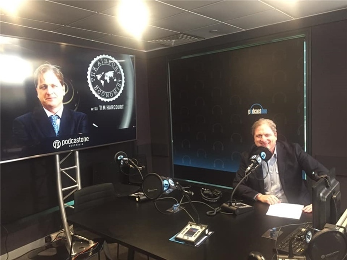 哈考特在《The Airport Economist TV Show》播客節(jié)目錄制現(xiàn)場。圖片來源:哈考特社媒