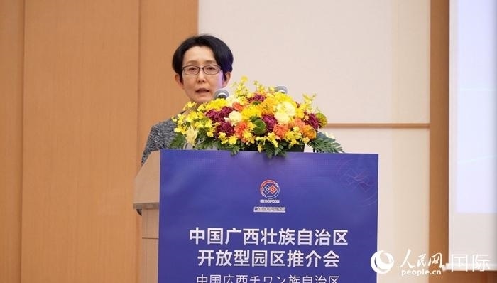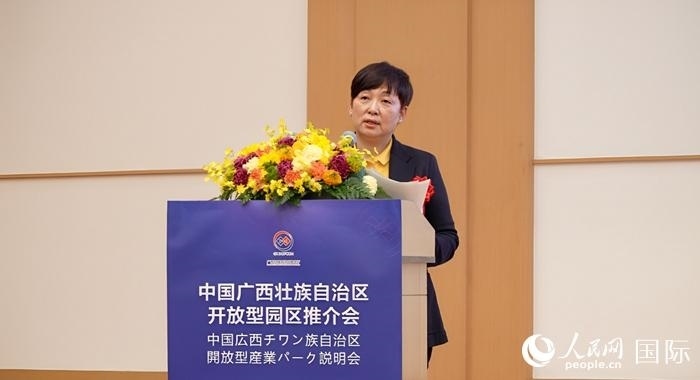 中國(廣西)自由貿(mào)易試驗(yàn)區(qū)工作辦公室專職副主任白嵐做主題推介時(shí),向日本經(jīng)濟(jì)產(chǎn)業(yè)界分享了廣西的四大發(fā)展機(jī)遇。