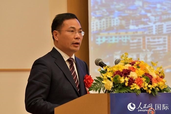 中國駐日本大使館經(jīng)濟(jì)商務(wù)公使代表申宇致辭。人民網(wǎng) 滕雪攝