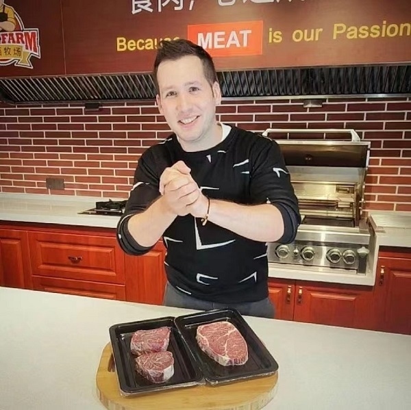 人民網(wǎng)北京3月24日電(符園園、古娜)“大家好,我是小高。一到冬天,我最愛(ài)吃的就是香噴噴熱乎乎的火鍋。所以我給大家?guī)?lái)了我們精心準(zhǔn)備的火鍋套餐?!敝辈ラg的高博睿,說(shuō)著一口流利的中文,熟練地向大家介紹自己的牛肉產(chǎn)品。