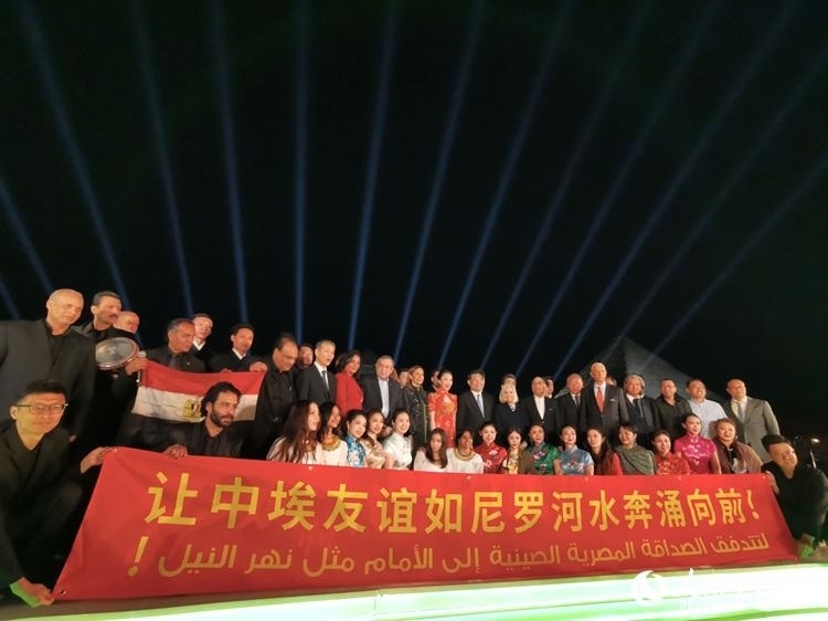 中埃兩國(guó)同為世界文明古國(guó),人文領(lǐng)域合作空間大、潛力足。夜幕下的吉薩三大金字塔在燈光映襯下巍峨聳立,現(xiàn)場(chǎng)橫幅展示出“讓中埃友誼如尼羅河水奔涌向前”字樣,兩大古老文明此刻在金字塔上空相遇。音樂會(huì)的成功舉辦將成為中埃兩國(guó)文化合作新起點(diǎn)。
