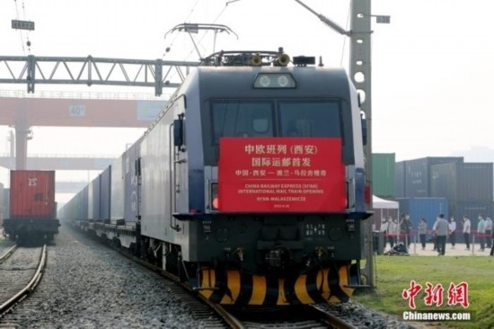 資料圖:2022年9月16日,中歐班列(西安)國際運郵專線首次開行,列車裝載著國際郵件、包裹、商業(yè)快件從西安國際港站駛出,經(jīng)阿拉山口口岸出境,將于約12天后抵達波蘭馬拉舍維奇,郵件再交由波蘭郵政轉(zhuǎn)運到歐洲各國。 中新社記者 張遠 攝