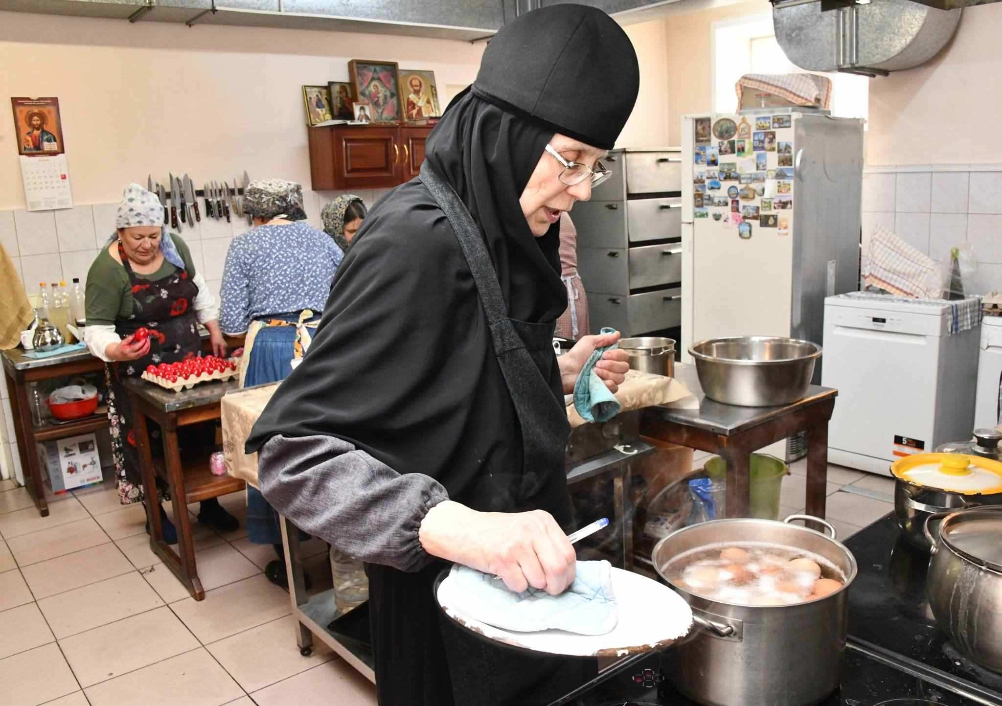 當(dāng)?shù)貢r間2023年4月13日,俄羅斯扎貝卡爾斯基地區(qū),阿塔馬諾夫卡定居點的一修道院內(nèi),民眾在制作東正教復(fù)活節(jié)前的傳統(tǒng)煮雞蛋。視覺中國