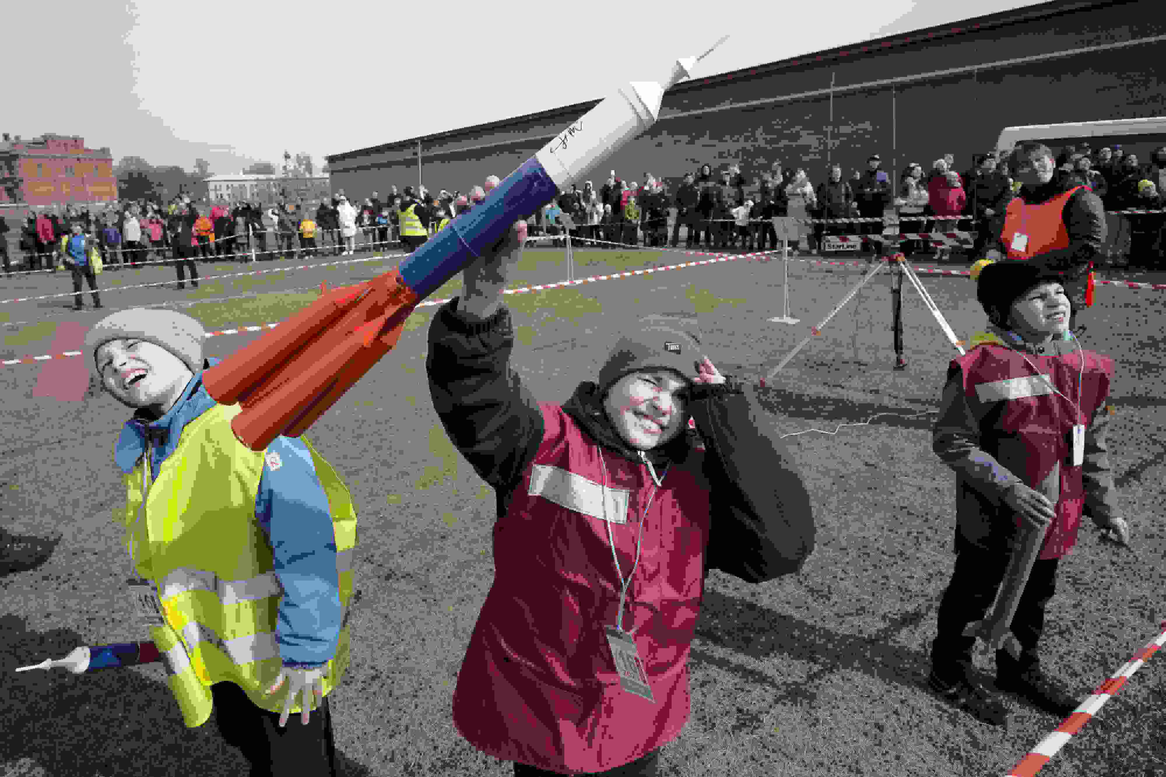 當(dāng)?shù)貢r間2023年4月16日,俄羅斯圣彼得堡,民眾發(fā)射火箭模型紀(jì)念人類首次太空飛行62周年。 視覺中國