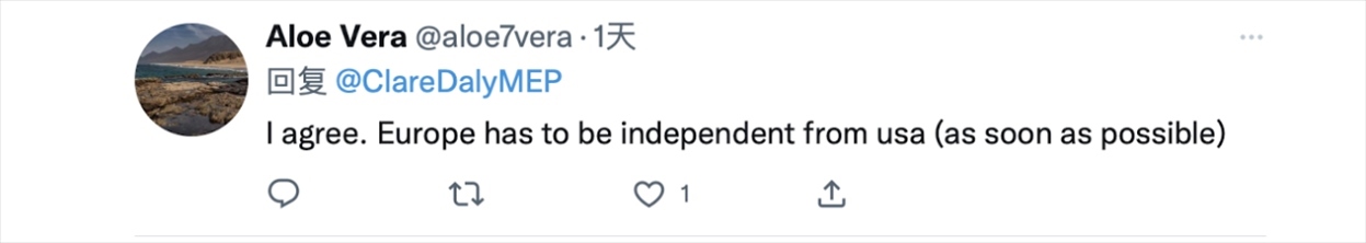 “我同意。歐洲必須從美國(guó)獨(dú)立出來(lái)(盡快)?!薄?/p>