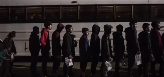 美國工廠童工們排成長隊。(美國微軟全國有線廣播電視公司視頻截圖)