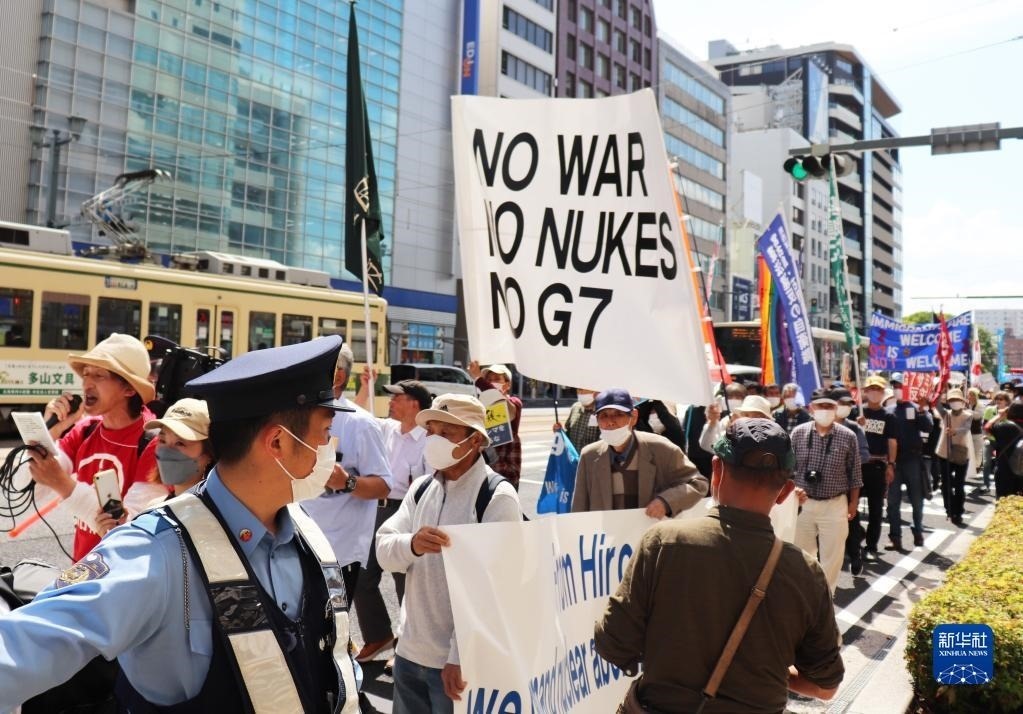 “不做戰(zhàn)爭幫兇”“不要G7”……14日,200多名日本民眾舉著各式標(biāo)語,在廣島和平紀(jì)念公園原子彈轟炸遺址舉行集會,強烈抗議七國集團(G7)峰會將在廣島召開。