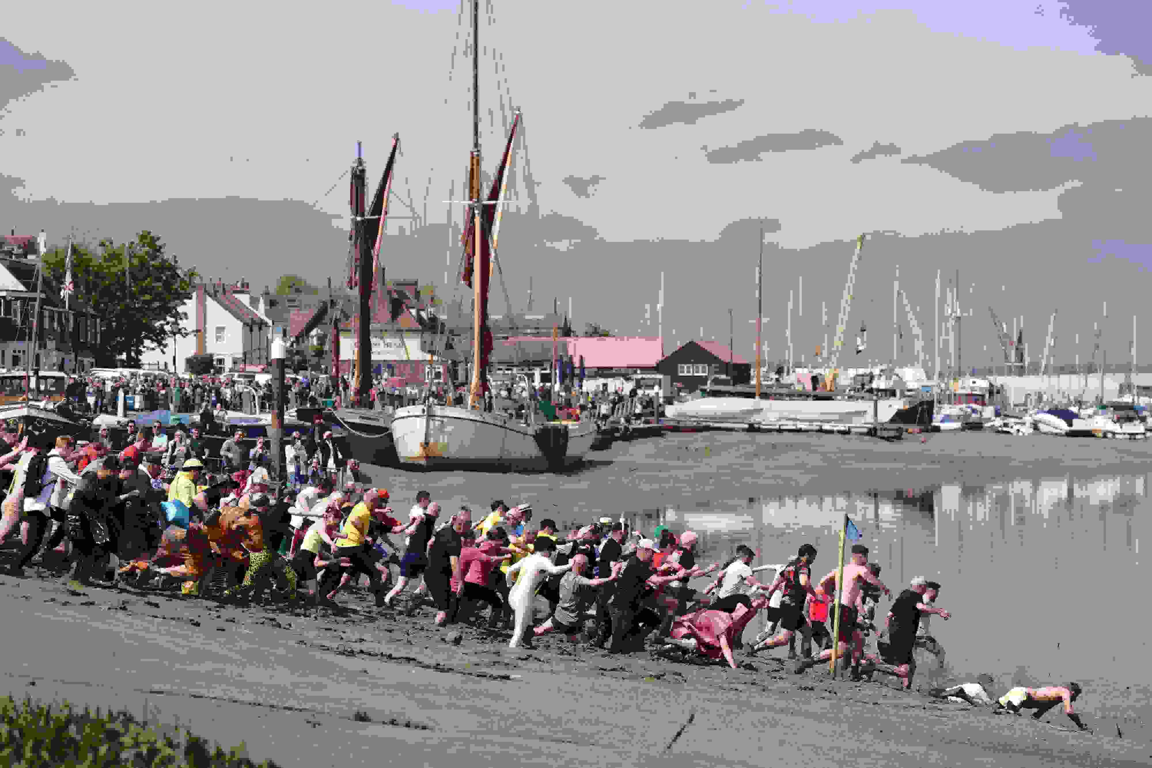 英國(guó)莫爾登上演年度“滾泥巴大賽”