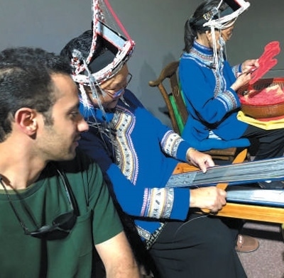 發(fā)展,是新疆留給納瓦爾的第一印象?!拔覀冏哌M了烏魯木齊這座中國西部的現(xiàn)代化城市,感受到了當?shù)孛癖姲簿訕窐I(yè)的生活?!痹谛陆畤H大巴扎,種類繁多的干果、色彩斑斕的艾德萊斯綢等特色產品讓人目不暇接。“我遇到了一位手藝精湛的地毯師傅,他編織過程中的每一個手勢都充滿了韻律感。我陶醉于他的手藝,也被地毯精美且極具傳統(tǒng)特色的紋樣設計所吸引。我向他請教,他也熱情回答。我后來把這些美好的記憶都融入了作品當中?!奔{瓦爾說。