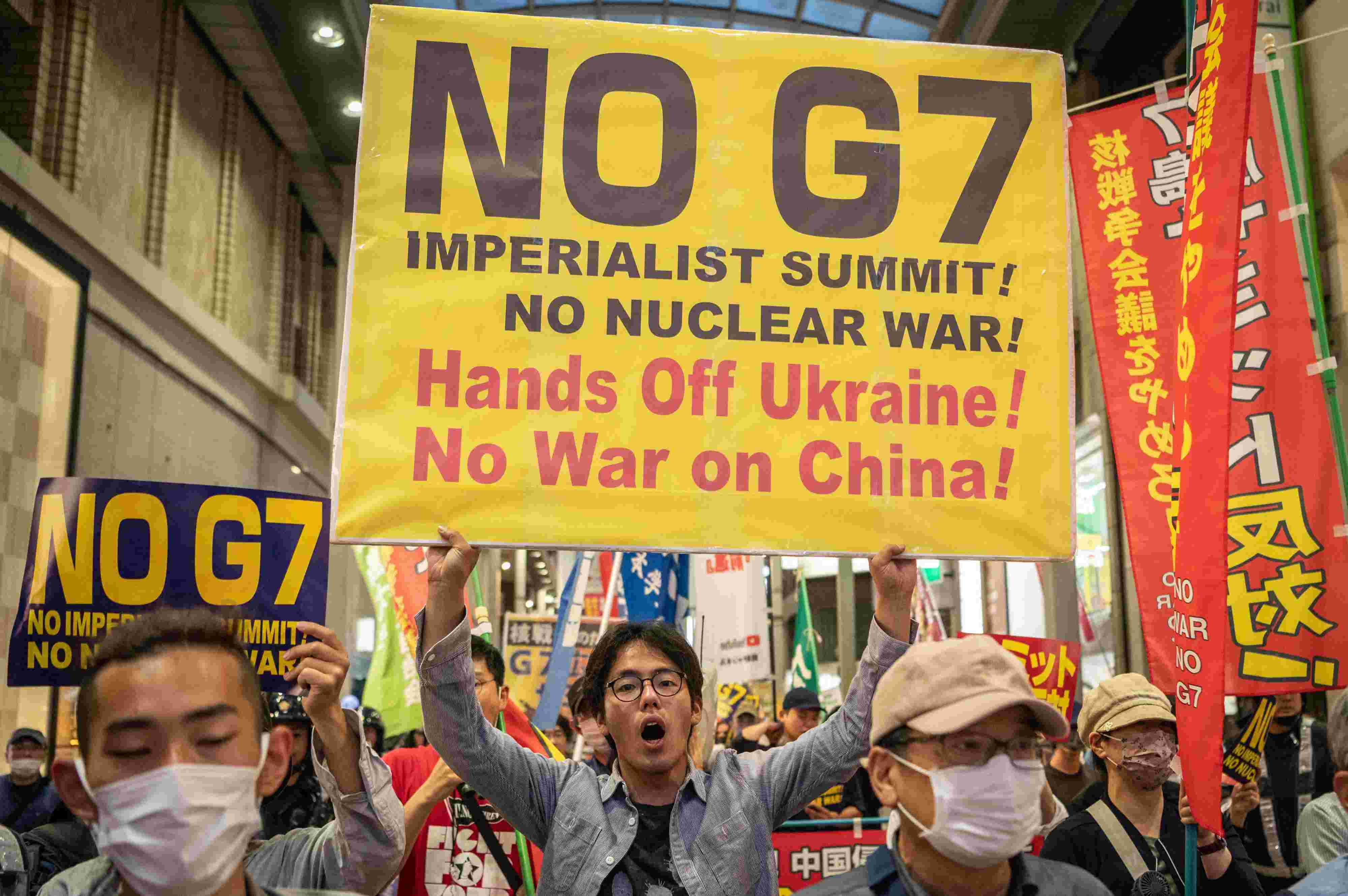 日本民眾抗議七國集團(tuán)峰會在廣島召開