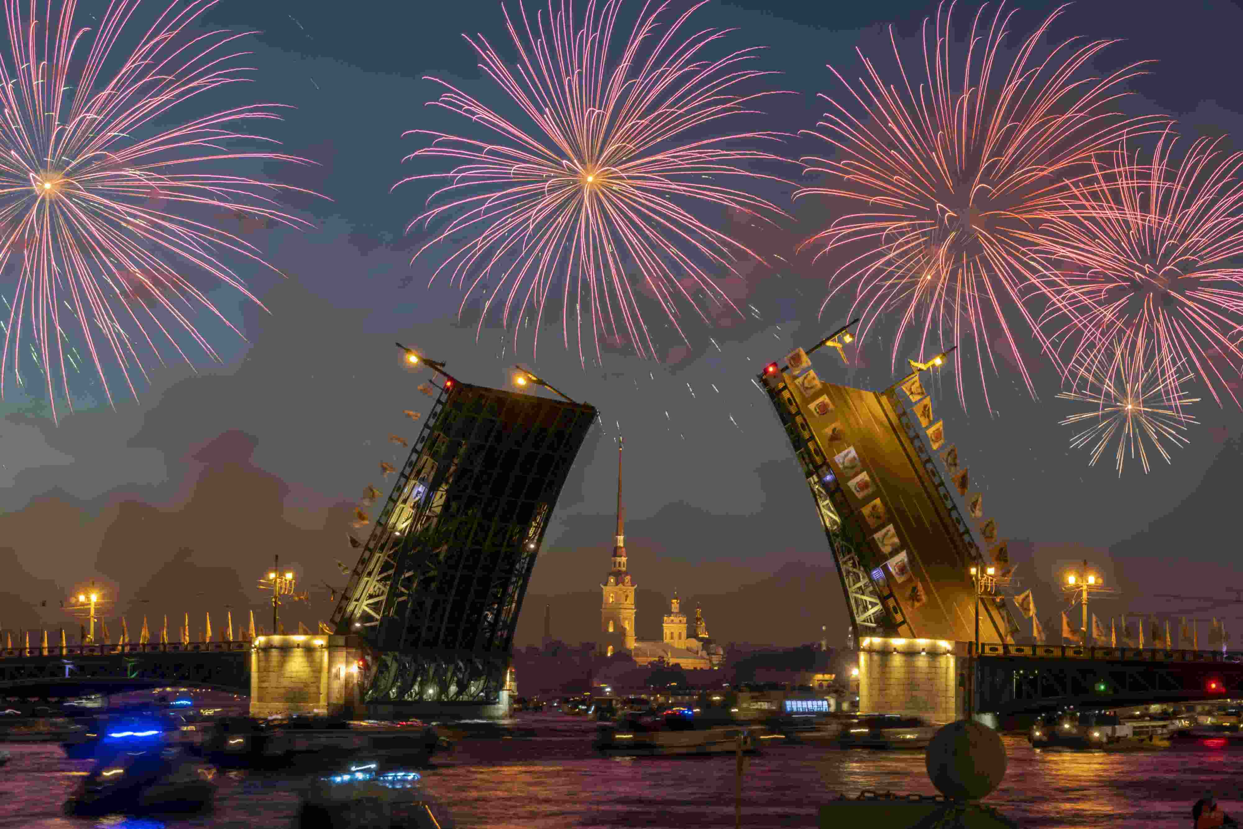 當(dāng)?shù)貢r間2023年5月28日,俄羅斯圣彼得堡燃放煙花慶祝建城320周年。 視覺中國