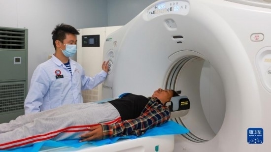 中國海軍“和平方舟”號醫(yī)院船訪問東帝汶并開展醫(yī)療服務(wù)期間,醫(yī)院船醫(yī)護(hù)人員為當(dāng)?shù)孛癖娺M(jìn)行CT檢查(9月6日攝)。新華社發(fā)(陳云飛 攝)
