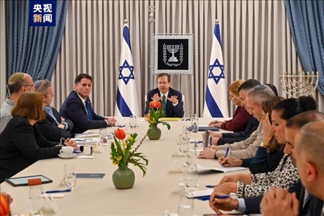 △以色列總統(tǒng)赫爾佐格主持各政黨政治磋商會(huì)議。