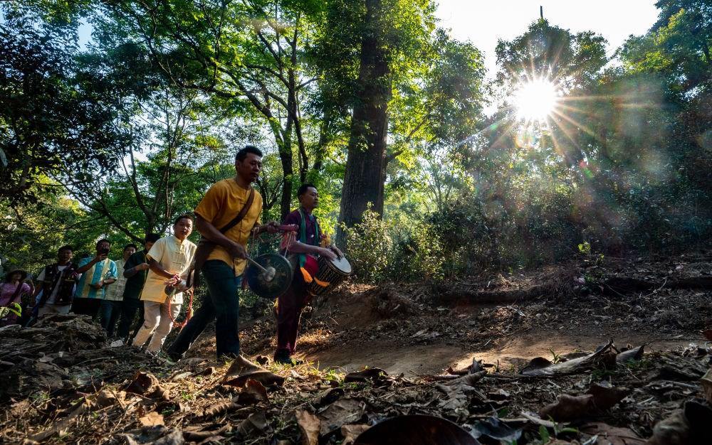 3月25日,景邁山茶農前往古茶林準備舉行祭拜儀式。新華社記者 江文耀 攝