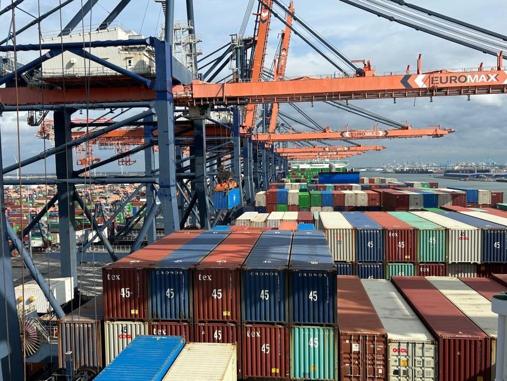 9月20日,“中遠(yuǎn)海運(yùn)室女座”號(hào)集裝箱船停靠在荷蘭鹿特丹港作業(yè)。新華社發(fā)