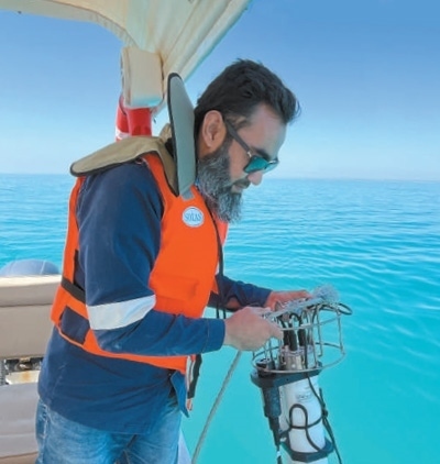 在中國港灣工程有限公司承建的沙特阿拉伯紅海開發(fā)項目中,工作人員使用水質(zhì)檢測浮標(biāo)傳感器對施工區(qū)域內(nèi)水質(zhì)進行監(jiān)測。唐浩偉攝