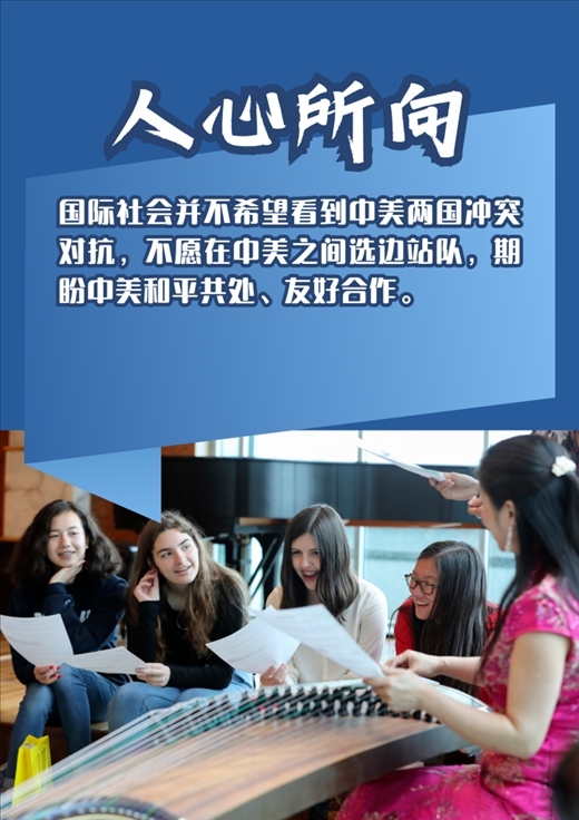 國際社會普遍希望中美緩和緊張,期待雙方可以本著對歷史、對人民、對世界負責的態(tài)度相向而行、妥處分歧,找到正確相處之道。