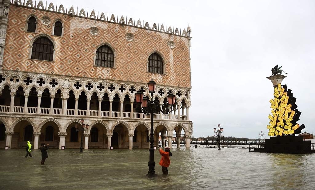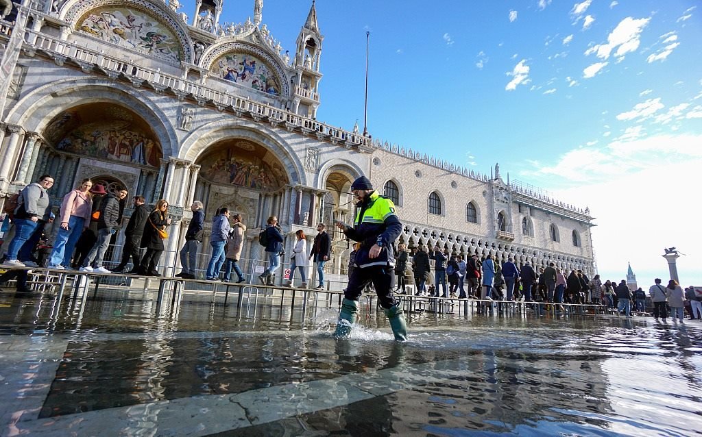 意大利威尼斯近日水位上漲,城內部分地區(qū)積水嚴重,游客走在水中游覽觀光。聯(lián)合國教科文組織認為,威尼斯每年接待約2800萬游客,當?shù)夭粩噙M行城市建設,導致過度開發(fā),市中心一些高大建筑影響城市整體形象。此外,全球變暖導致海平面上升,四面環(huán)水的威尼斯非常容易遭受洪水侵襲,但威尼斯當局沒有充足、詳細的應對方案。威尼斯正面臨“不可逆轉”的破壞風險,意大利有關部門“缺乏戰(zhàn)略眼光”,無法解決這座水城目前面臨的種種問題。