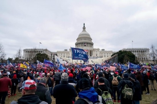 2021年1月6日,在美國首都華盛頓的國會大廈前,時任總統(tǒng)特朗普的支持者舉行示威游行。部分示威者沖擊國會大廈,導致國會參眾兩院認證總統(tǒng)選舉結(jié)果的聯(lián)席會議中斷數(shù)小時。事件造成4名示威者和1名國會警察死亡。新華社記者劉杰攝