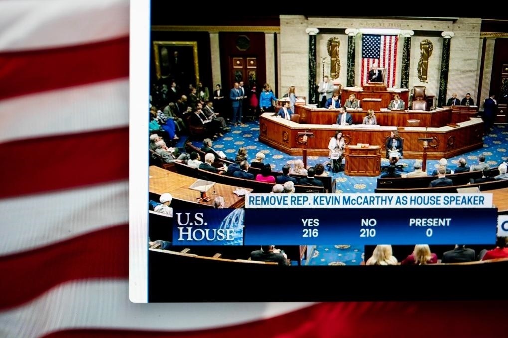 眾議院3日以216票贊成、210票反對(duì)的結(jié)果通過罷免麥卡錫的決議。這項(xiàng)決議由共和黨籍眾議員馬特·蓋茨提出,他和另外7名共和黨人以及全部參與表決的208名民主黨人一起投下贊成票。