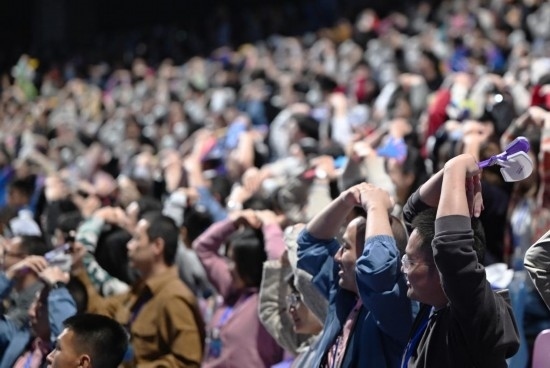 10月8日,觀眾在閉幕式上。當(dāng)日,杭州第19屆亞洲運(yùn)動(dòng)會(huì)閉幕式在杭州奧體中心體育場(chǎng)舉行。(新華社記者陳鐘昊攝)