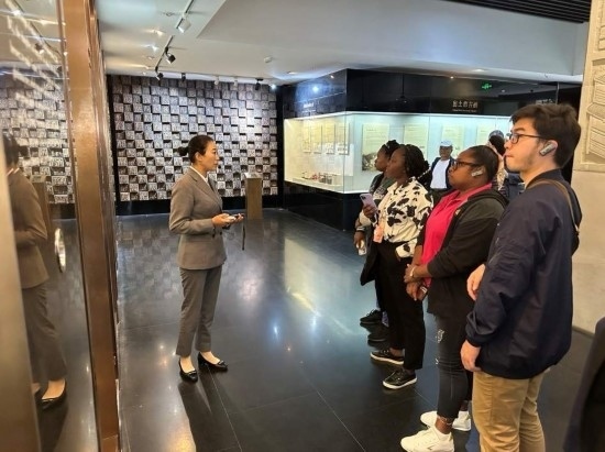 10月23日,在中國(guó)酒文化城,2023“一帶一路”媒體合作論壇聯(lián)合采訪團(tuán)團(tuán)員認(rèn)真聆聽(tīng)講解。本報(bào)記者 劉書文攝