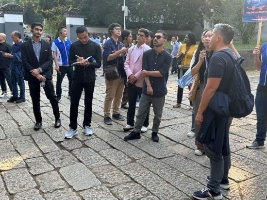 10月24日,2023“一帶一路”媒體合作論壇聯(lián)合采訪團(tuán)的外國(guó)記者參訪岳麓書院。(本報(bào)記者 劉書文攝)