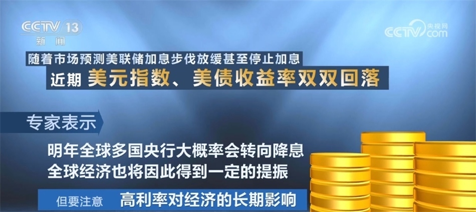 隨著市場(chǎng)預(yù)測(cè)美聯(lián)儲(chǔ)加息步伐放緩甚至停止加息,近期,美元指數(shù)、美債收益率雙雙回落,專家表示,明年全球多國(guó)央行大概率會(huì)轉(zhuǎn)向降息,全球經(jīng)濟(jì)也將因此得到一定的提振。但是,要注意的是,高利率對(duì)經(jīng)濟(jì)的長(zhǎng)期影響。在國(guó)際貨幣基金組織(IMF)此前發(fā)布的《世界經(jīng)濟(jì)展望》中預(yù)計(jì),2024年全球經(jīng)濟(jì)增速為2.9%,較2023年有所下降。